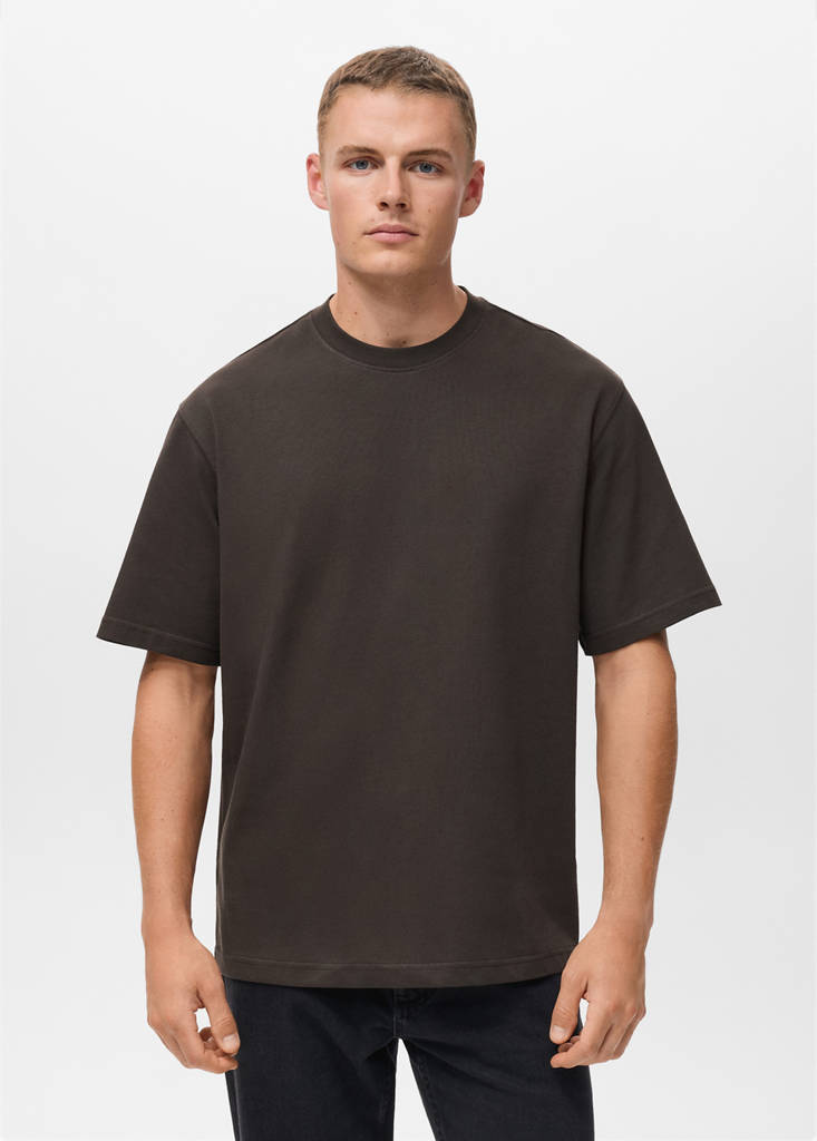 Relaxed fit. 100% cotton fabric. Heavy weight. Round neck. Short sleeves. Straight hem. Short sleeves. The grey colour is exclusive online. Standard Length. Round Lapel Collar. Relaxed Silhouette. Short Sleeve Length