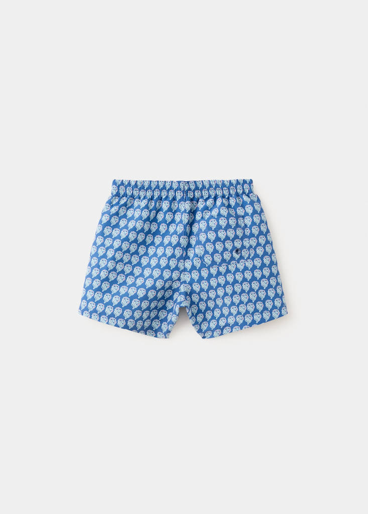 Straight design. Short design. Printed design. Flowers print. Elastic waist with adjustable drawstring. Contrasting cord. Swimwear collection
