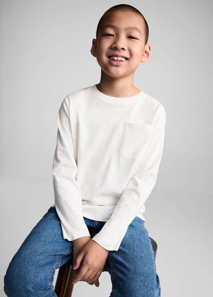 Long sleeve cotton t-shirtCurrent price [AZN 16.99 ]AZN 16.99Select a colourOff WhiteSelect your size5-6 years (116cm)7-8 years (128cm)9-10 years (140cm)11-12 years (152cm)13-14 years (164cm)Size guideAdd to WishlistSee lookFree delivery to storeSee availability in storeDescriptionBack to school collection. Straight design. Chest pocket. Round neck. Long sleeves.See detailsItem qualitiesRecycled cottonAt least 20%This fibre is obtained from pre- and post-consumer textile waste that is transformed into new fabrics.Share