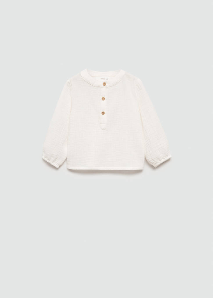 100% Cotton. Straight design. Bambula fabric. Round neck. Long sleeves. Three-button front closure