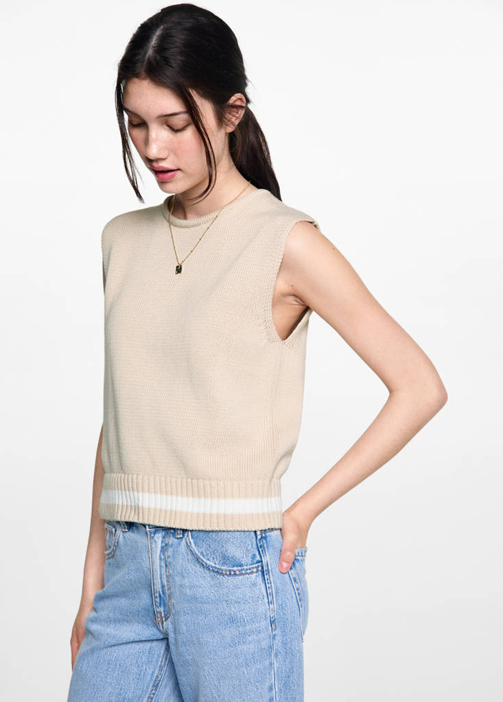 Striped knitted giletCurrent price [AZN 65.99 ]AZN 65.99Select a colourBeigeSelect your sizeXSSMDimensionsAdd to WishlistSee lookFree delivery to storeKnit fabric. Straight design. Round neck. Sleeveless. Back to class. Striped designDetails, composition and careStore availabilityItem qualitiesRecycled cottonAt least 20%This fibre is obtained from pre- and post-consumer textile waste that is transformed into new fabrics.