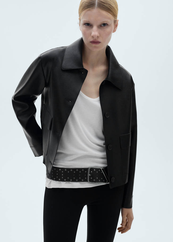 100% bovine leather. Wide design. Buckle closure. Decorative studs