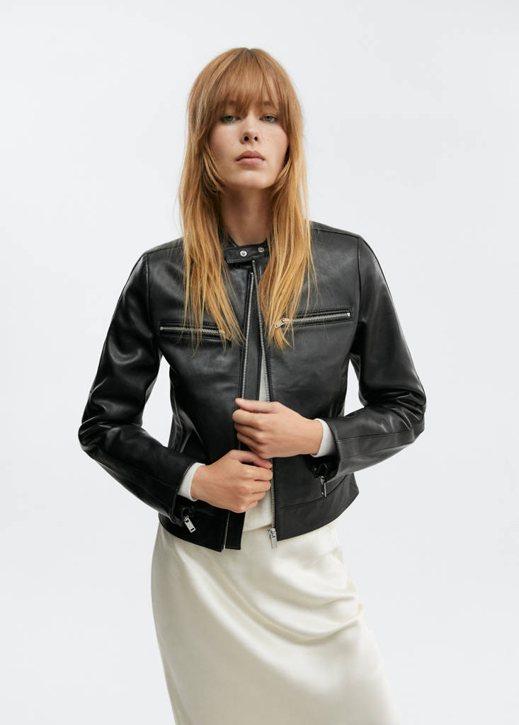 Zipper leather biker jacket