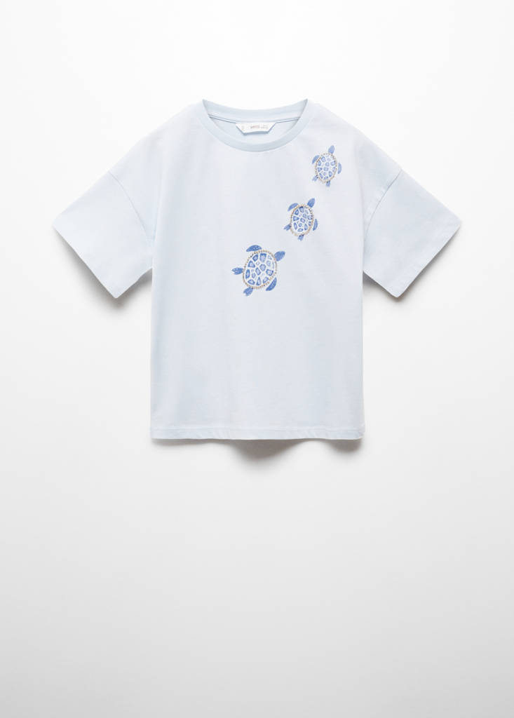 Коллекция для праздников, церемоний и первого причастия. 100% хлопок. Прямой крой. Принтованные черепахи. Декоративные бусинки. Круглый вырез. Короткий рукав