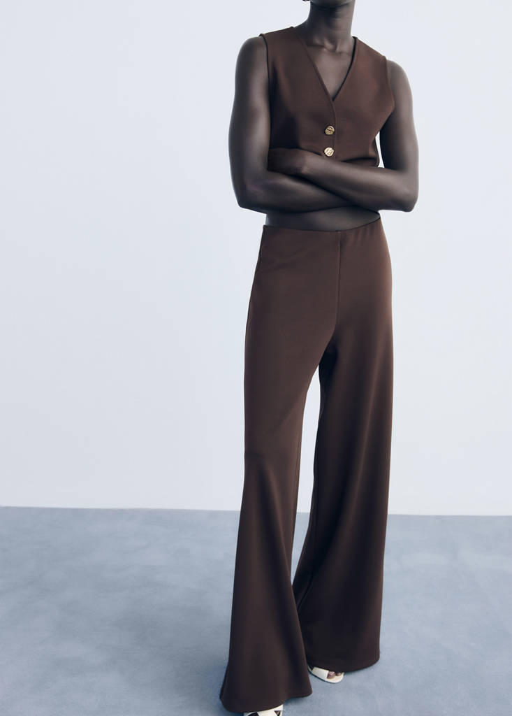 Эластичная ткань. Длинный дизайн. Прямой крой. Средняя посадка. Талия с эластичной резинкой. Без застёжки. Total look