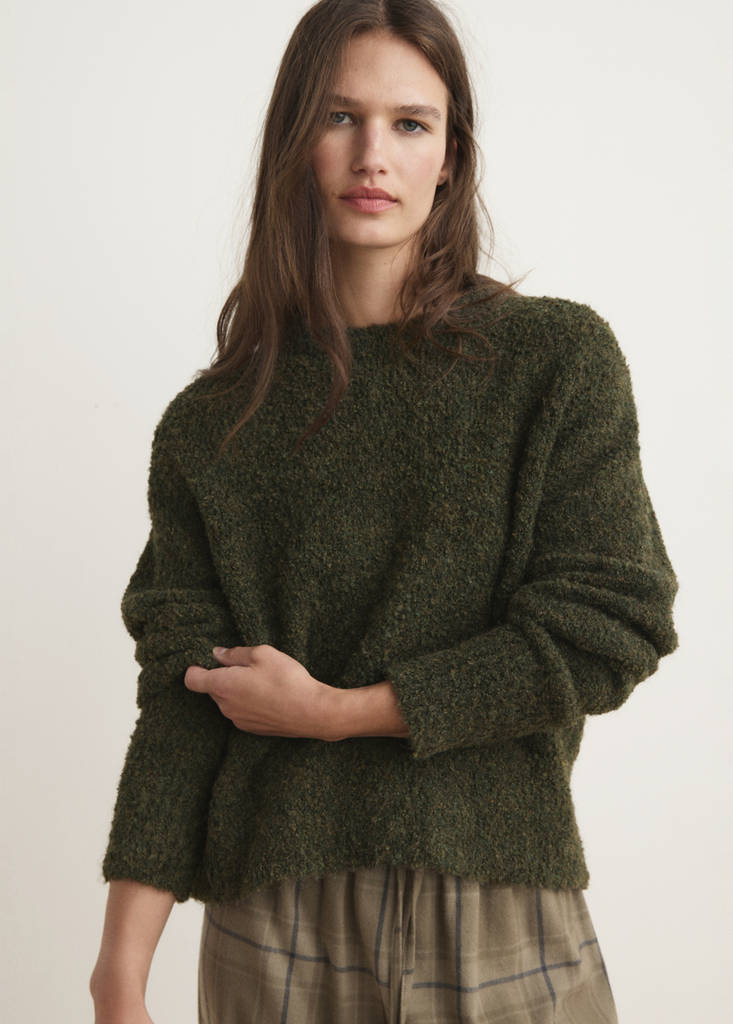 Ткань из шерсти. Круглый вырез. Биколор. Букле. Длинный дизайн. Прямой крой. Длинные рукава. Мягкая, приятная на ощупь ткань. Обеспечивает комфорт и свободу движений. Доступно в различных цветах. Сочетается с другими продуктами из коллекции