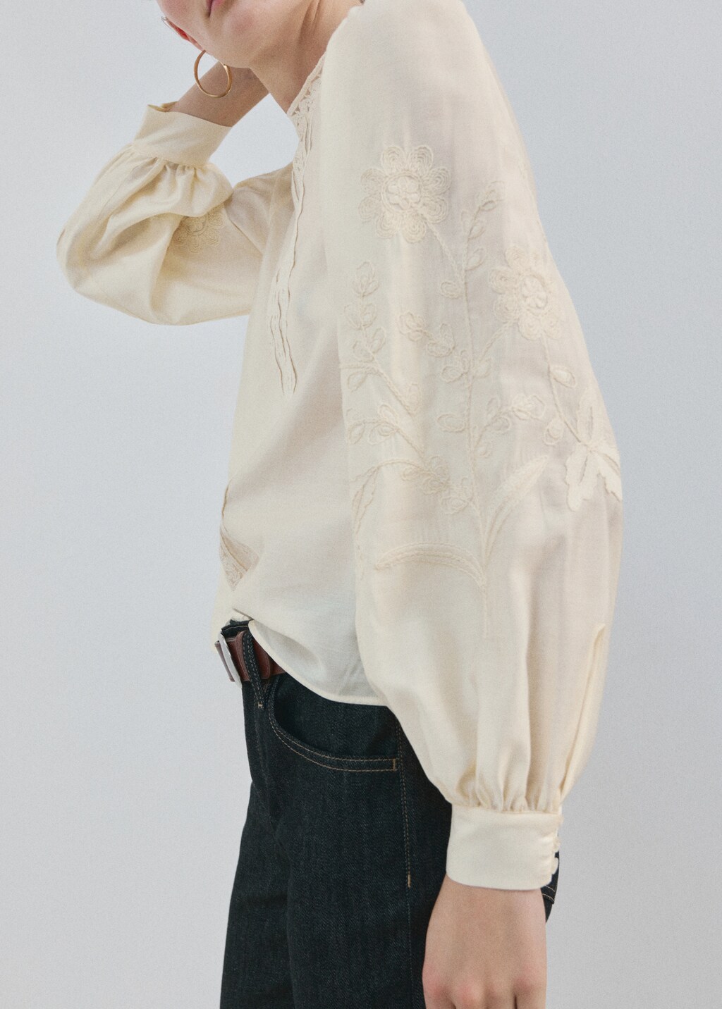 Блузка из хлопка с цветочной вышивкой