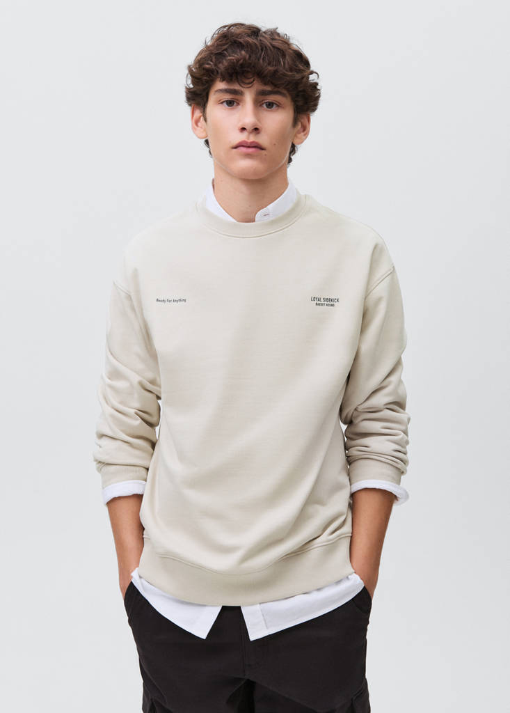 Ткань 100% хлопок. Прямой крой. Дизайн с принтом. Спереди принт. Принт на задней части. Круглый вырез. Длинные рукава. Воротник, манжеты и низ в рубчик