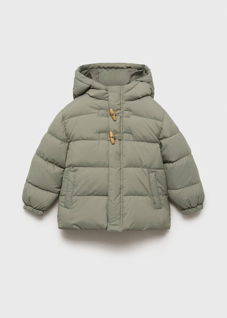 Puffer buttoned coatCurrent price [KM. 59.95 ]KM. 59.95Select a colourPastel GreenSelect your size9-12 months (80cm)Not available. I want it!12-18 months (86cm)Not available. I want it!18-24 months (92cm)Not available. I want it!2-3 years (98cm)Not available. I want it!3-4 years (104cm)Not available. I want it!4-5 years (110cm)Not available. I want it!5-6 years (116cm)Not available. I want it!DimensionsNotify meAdd to WishlistSee lookFree delivery to storePolyester fabric. Quilted fabric. Straight design. With hood. Long sleeves with elastic cuffs. Two side pockets. Zip closure. Two-button fastening at the front. Inner polar fleece liningDetails, composition and careStore availability