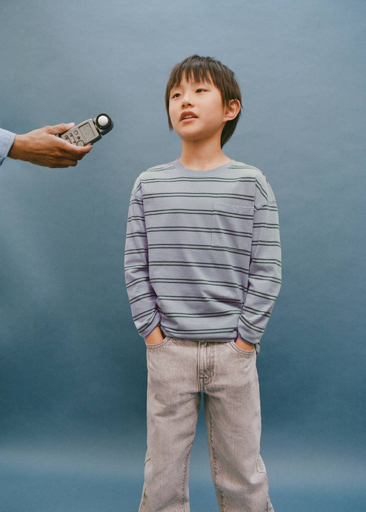 100% cotton fabric. Straight design. Striped design. Round neck. Long sleeves. Decorative pocket on the front section