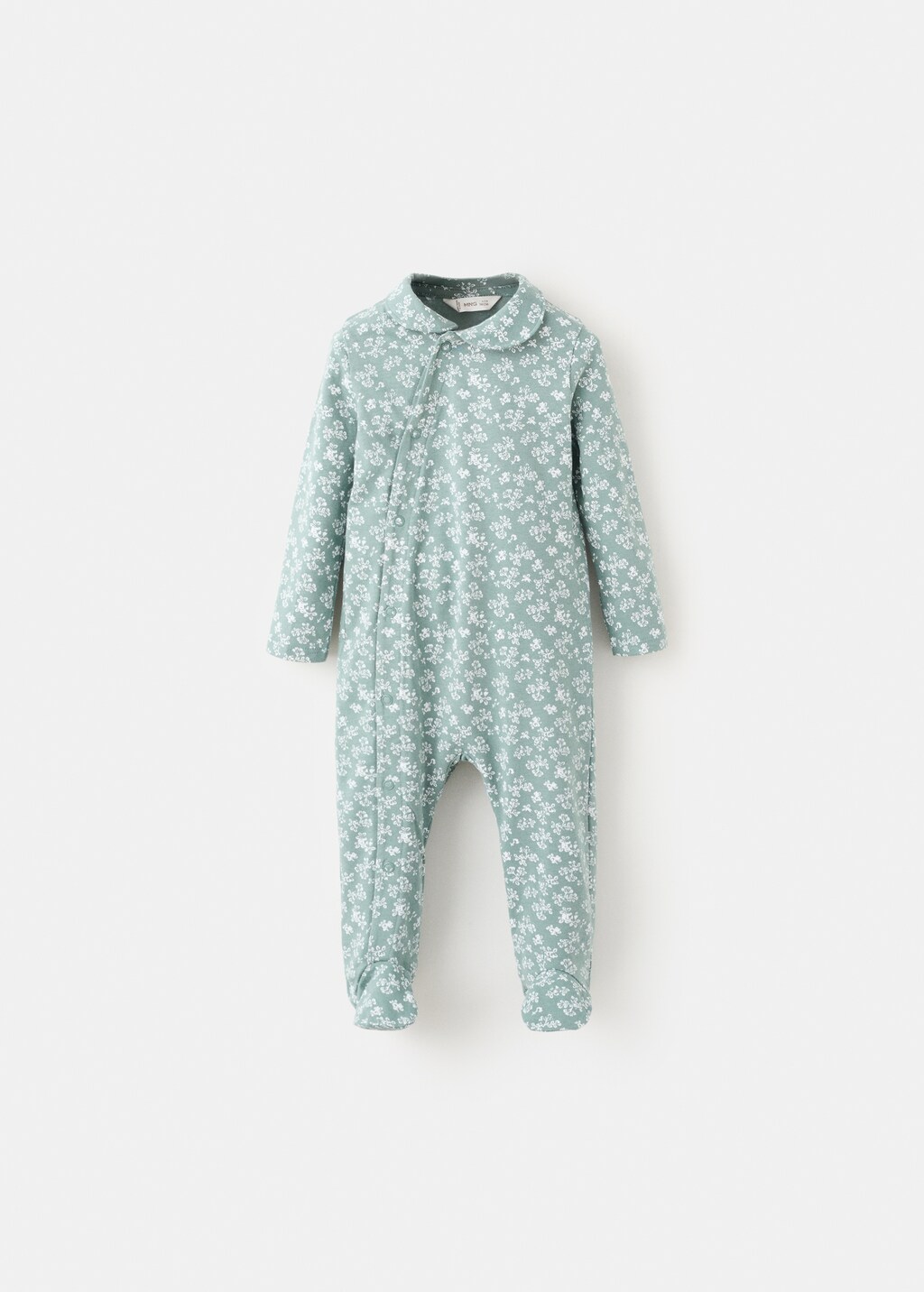 100% cotton fabric. Long design. Cute design. Floral-print design. Peter Pan collar. Side button fastening.