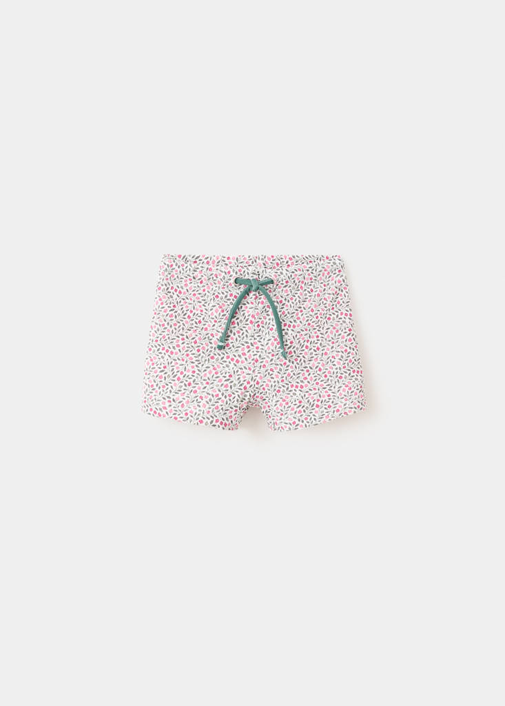 Stretch fabric. Floral-print design. Elastic waist with adjustable drawstring. Contrasting cord