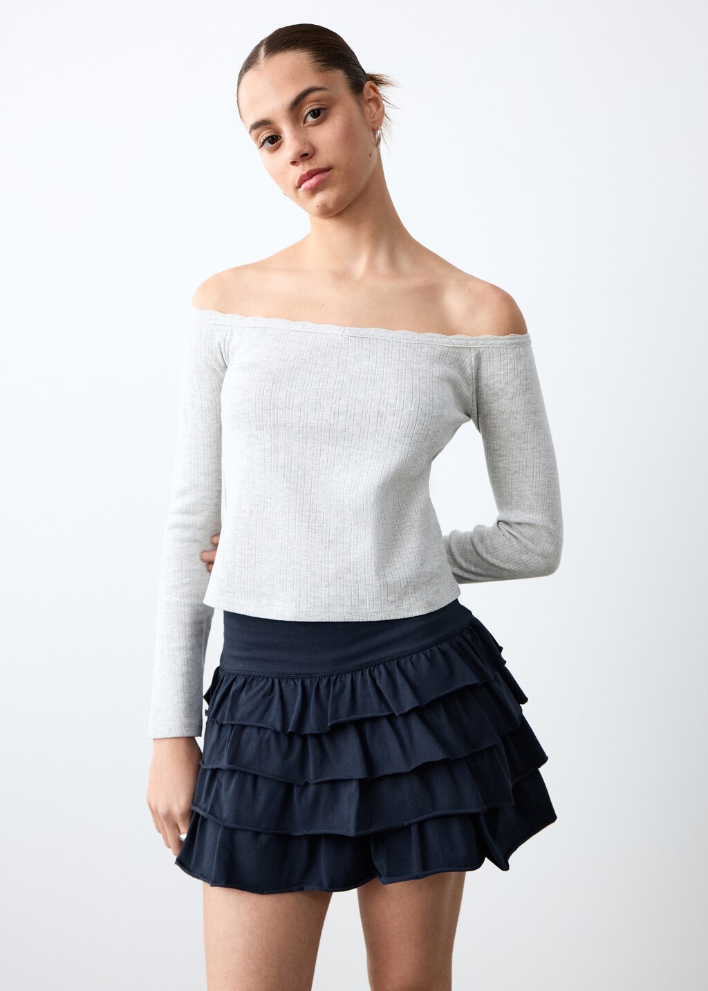 Shell basket bagCurrent price [KM. 39.95 ]KM. 39.95Select a colourNavySize change - Consult the Size GuideSelect your sizeXXSXSSMLSize guideAddAdd to your wishlistSee lookFree delivery to storeSee availability in storeDescriptionCotton fabric. Straight design. Short design. Elastic pleated on the waist. Ruffle detail.See detailsItem qualitiesRecycled cottonAt least 20%This fibre is obtained from pre- and post-consumer textile waste that is transformed into new fabrics.Share