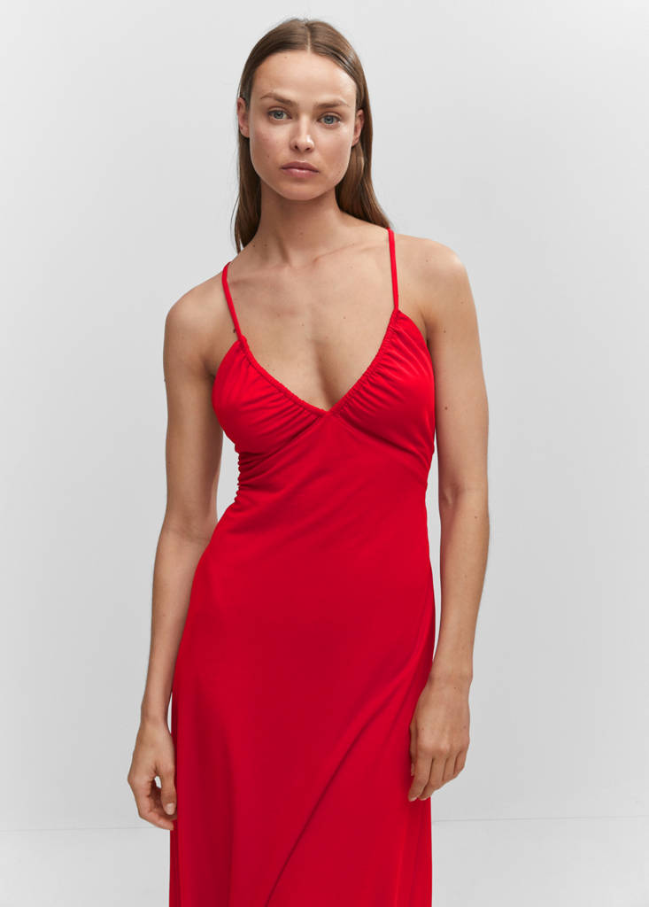 Ruched midi dressCurrent price [KM. 59.95 ]KM. 59.95Select a colourRedThe model is wearing size S and is 180cm tall.Select your sizeXXSNot available. I want it!XSNot available. I want it!SNot available. I want it!MNot available. I want it!LNot available. I want it!XLNot available. I want it!XXLNot available. I want it!MeasurementsNotify meAdd to WishlistSee lookFree delivery to storeFluid fabric. A-line design. Midi design. V-neck. Thin straps. Back neckline. Bow fastening on the back. Ruched detailsDetails, composition and careStore availability