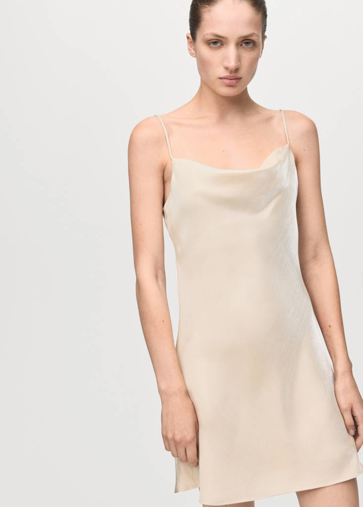 Satin fabric. Short design. Fitted design. Low neckline. Thin adjustable straps. No Fastening. Inner lining. This garment is part of our party and event collection, designed to elevate your looks for special occasions