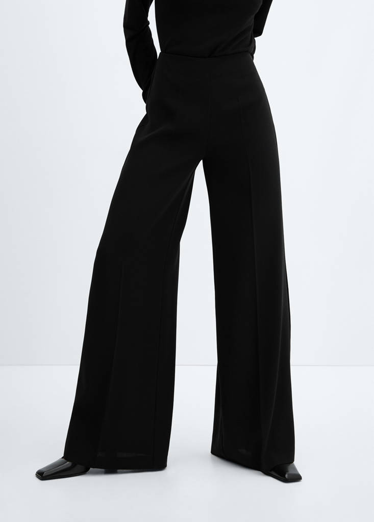 Long design. Long Long. Palazzo design. High Waist. Silhouette Palazzo. Fluid fabric. Straight design. Mid-rise. Dart detail. Invisible side zip fastening. Party, ceremony and communion collection. Office looks. High waist