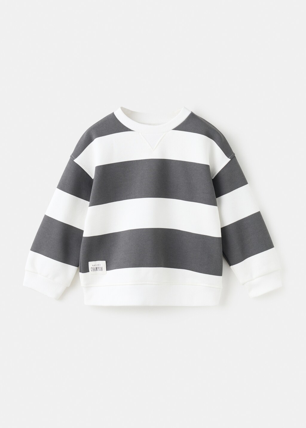 Tissu en coton. Coupe droite. Design à rayures. Col rond. Manche longue. Col, poignets et ourlet côtelés.