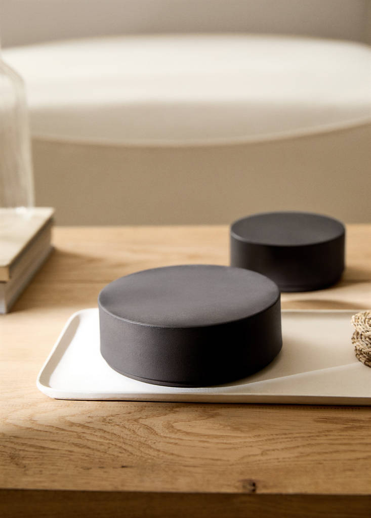 Diamètre : 16 cm. Base : 16 cm. Hauteur : 5,5 cm. 100% fer. Design rond. Avec couvercle. Parfaite pour ceux qui apprécient la beauté dans les objets fonctionnels, cette boîte ne se contente pas d'organiser, elle ajoute également une touche de sophistication à n'importe quel espace. S'harmonise avec d'autres articles de la collection. Cette boîte est disponible en deux tailles (S,M)