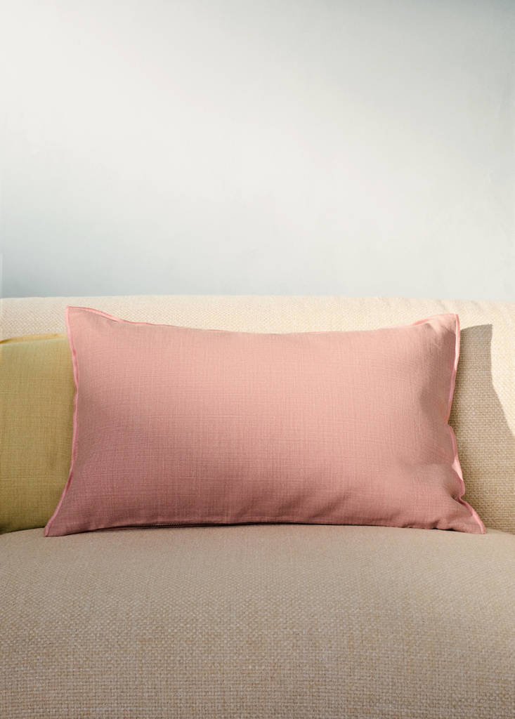 Tissu en lin. Taille : 40x60cm. Design réversible : une face chinée, l’autre unie. Fermeture à zip. Le point de surfilage offre une finition moderne et propre, garantissant des coutures esthétiques et durables. Disponible en plusieurs couleurs