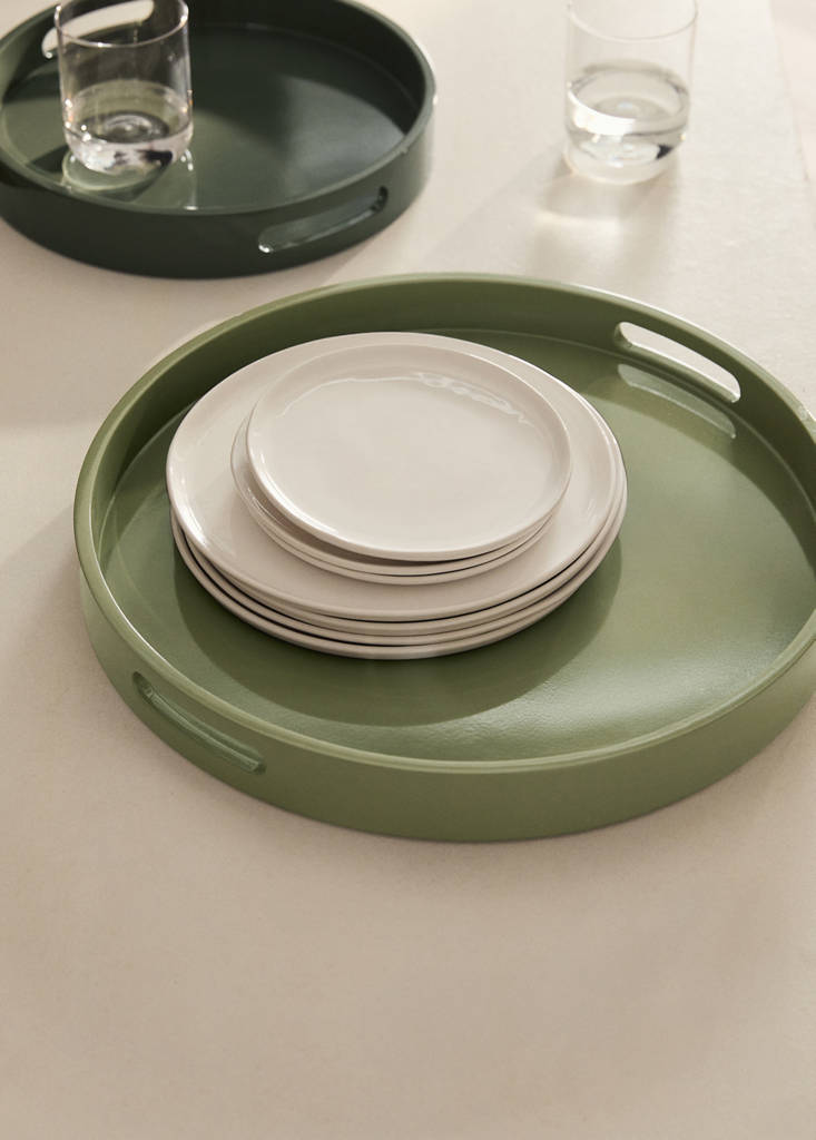 Plateau décoration. Diamètre : 40,5 cm. Hauteur : 5 cm. Deux poignées intégrées. Design laqué. Ajoute une touche colorée à votre espace. Idéal pour organiser et exposer une variété d'articles, des bougies et des fleurs aux livres et accessoires décoratifs. Son design polyvalent permet d'ajouter une touche de raffinement et d'ordre à n'importe quel espace. Disponible en deux tailles