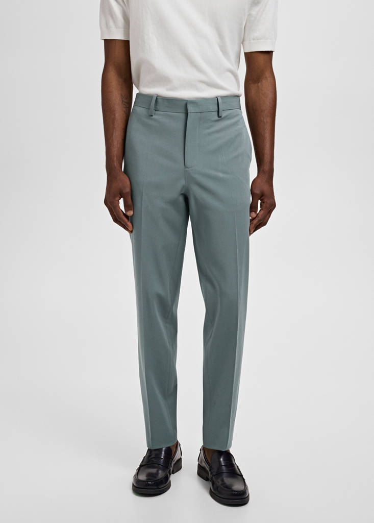 Slim fit. Collection tailleur. Passants pour ceinture. Fermeture avant à double boutonnage et fermeture éclair. Poches latérales. Deux poches passepoilées avec bouton à l'arrière. Détail de pli marqué à l'avant et à l'arrière