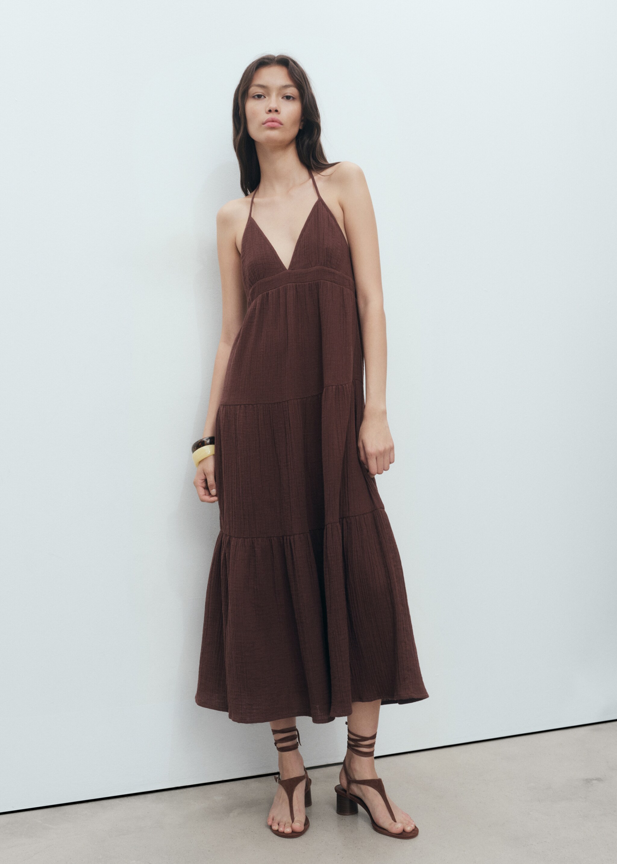 Asymmetrische satijnen jurk met gerimpelde zijkant