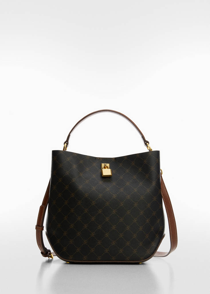 Groot formaat. Shopper stijl. Lange verstelbare en afneembare schouderband. Kort geïntegreerd handvat. Metalen magneetsluiting. Ritssluiting. Hangslotdetail. Voering