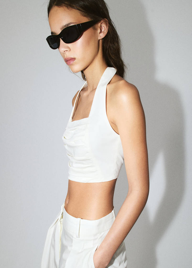 Crop haltertopHuidige prijs [39,99 € ]39,99 €Kies een kleurWitHet model draagt maat S en is 178cm lang.Kies je maatXSSMLXLAfmetingenToevoegenOpslaan als favorietLook bekijkenGratis verzending naar winkelKatoenmix stof. Rekbare stof. Rechte snit. Crop ontwerp. Halternek. Vierkante hals. Striksluiting om de nek. Open rug. Total lookDetails, samenstelling en verzorgingVoorradig in de winkel