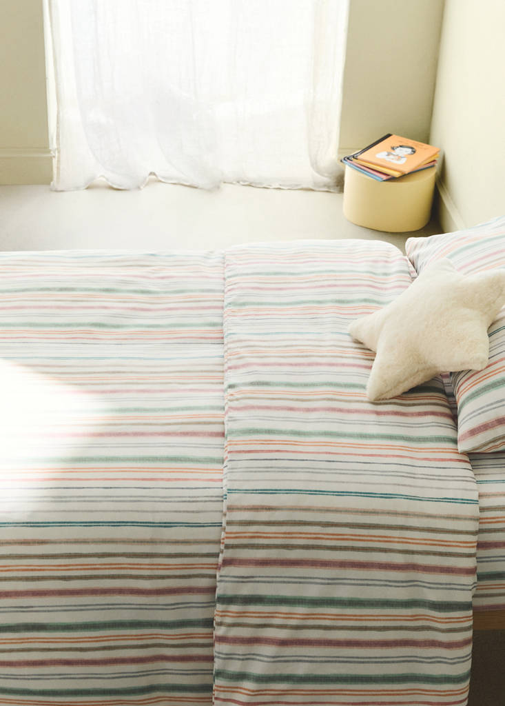 Dekbedovertrek van perkal-katoen met meerkleurige strepen, voor een bed van 135/140 cm