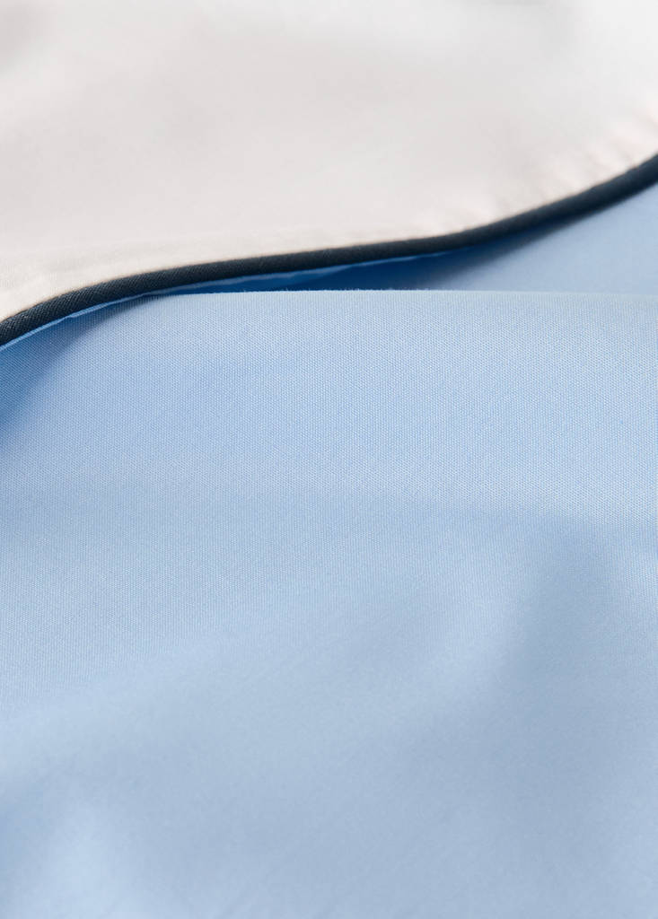 Reversibel dekbedovertrek van perkalkatoen met contrasterend biesje voor wieg