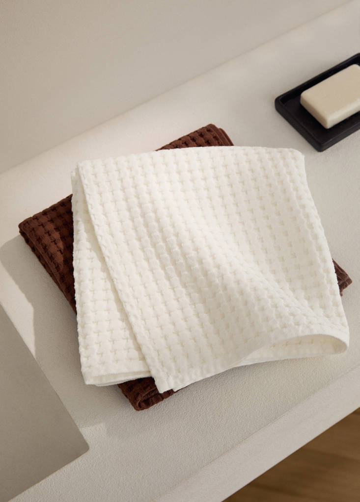 100% Katoen. Gramgewicht: 400 gr/m2. Grootte: 50x90cm. Wafeltextuur. Frisse, zachte, duurzame, ademende en veelzijdige stof. Ervaar het comfort, de textuur en het uitstekende absorptievermogen van dit handdoekje. Het elegante ontwerp voegt een vleugje verfijning toe aan je badkamer. Verkrijgbaar in verschillende kleuren. Combineer met meer producten uit de collectie
