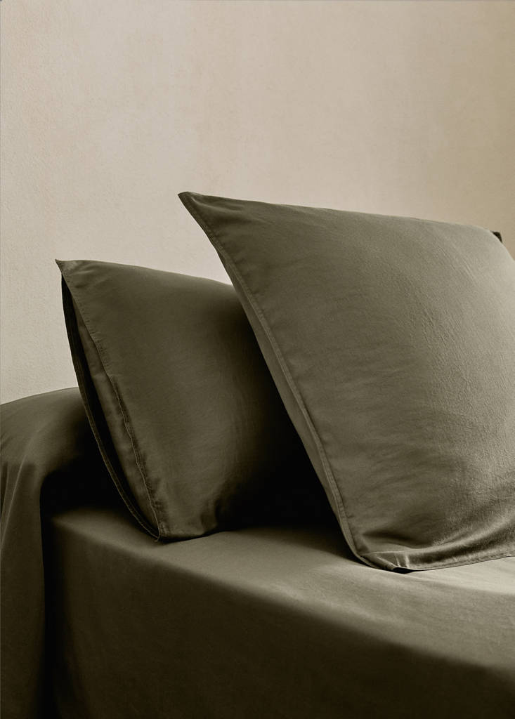 Twee kussenslopen van gewassen katoensatijn met dubbele stiksels 60x60 cm