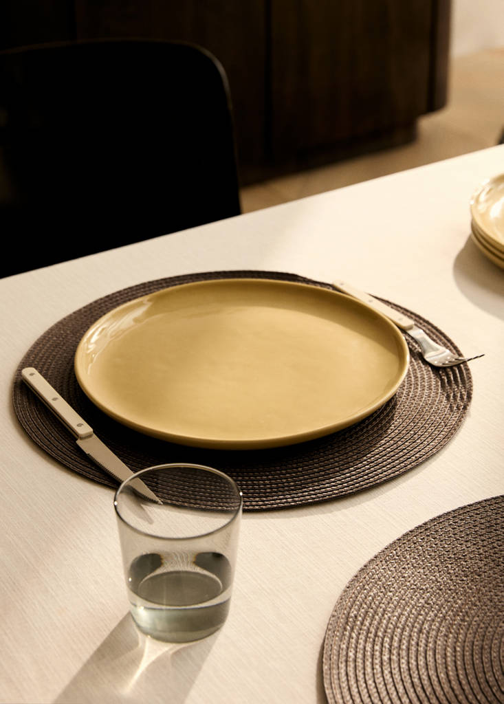 Pack van 2. Individuele placemat. Afmetingen: 38x38 cm. Ronde vorm. Concentrisch patroon. Combineert een rustiek ontwerp met elegante texturen. Ideaal om een verfijnde en tijdloze touch aan elke tafel toe te voegen