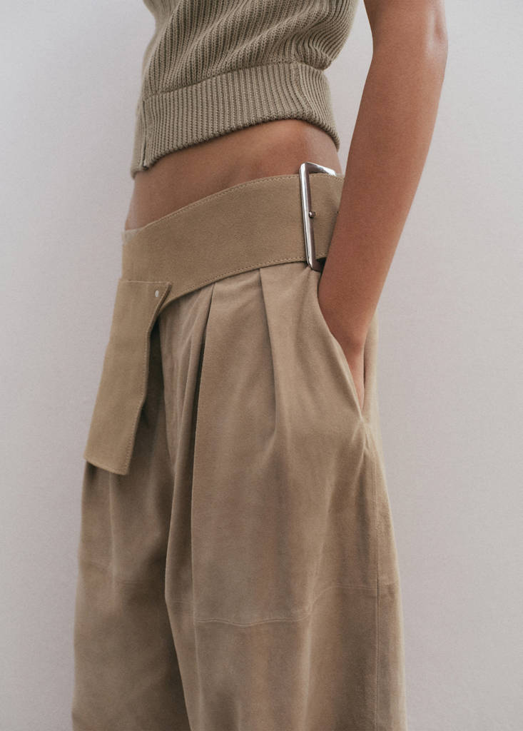 100 % cuir bovin. Suède. Design large. Fermeture à boucle.