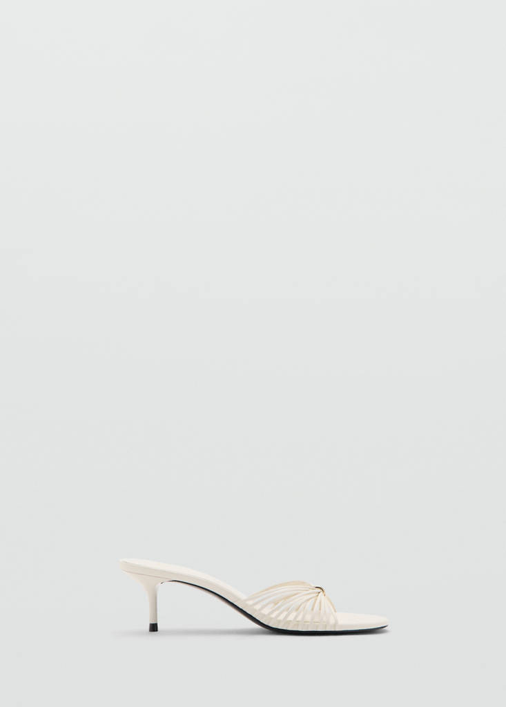 Motif bretelles. Design slingback. Bout ouvert. Talon kitten. Le talon mesure 5,5 cm.