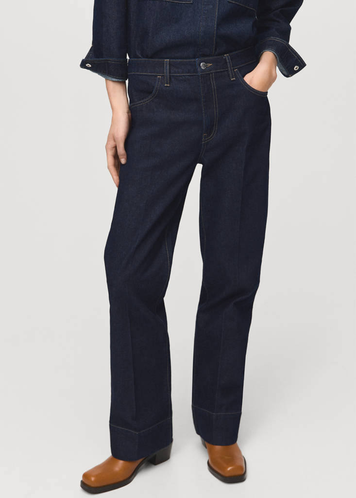 Tissu en coton style denim. Design long. Coupe droite. Taille mi-haute. Passants de ceinture. Deux poches avant. Deux poches plaquées à l'arrière. Couture inférieure large. Fermeture Éclair et bouton à l’avant. Disponible en grande taille.