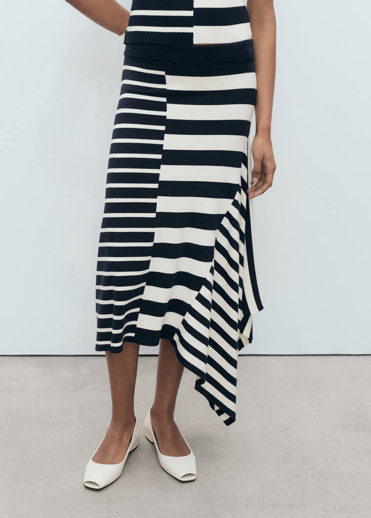 Jupe en maille asymétrique à rayures