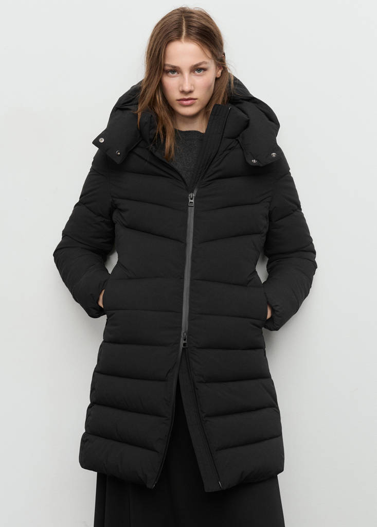 Hydrofuge : La finition résistante de ce vêtement protège contre les pluies légères, repoussant le contact avec l'eau et les gouttes de pluie. Design matelassé. Coupe ajustée. Coupe midi. Avec capuche. Manches longues avec poignets élastiques. Deux poches latérales passepoilées. Double fermeture Éclair. Rembourré. Doublure intérieure. Disponible Plus.
