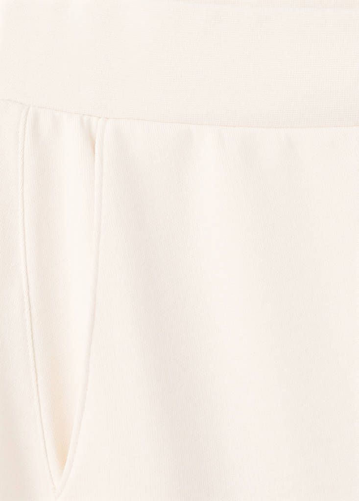 Tissu de coton élastique. Coupe droite. Design long. Taille mi-haute. Deux poches latérales. Taille ajustable. Sans fermeture.