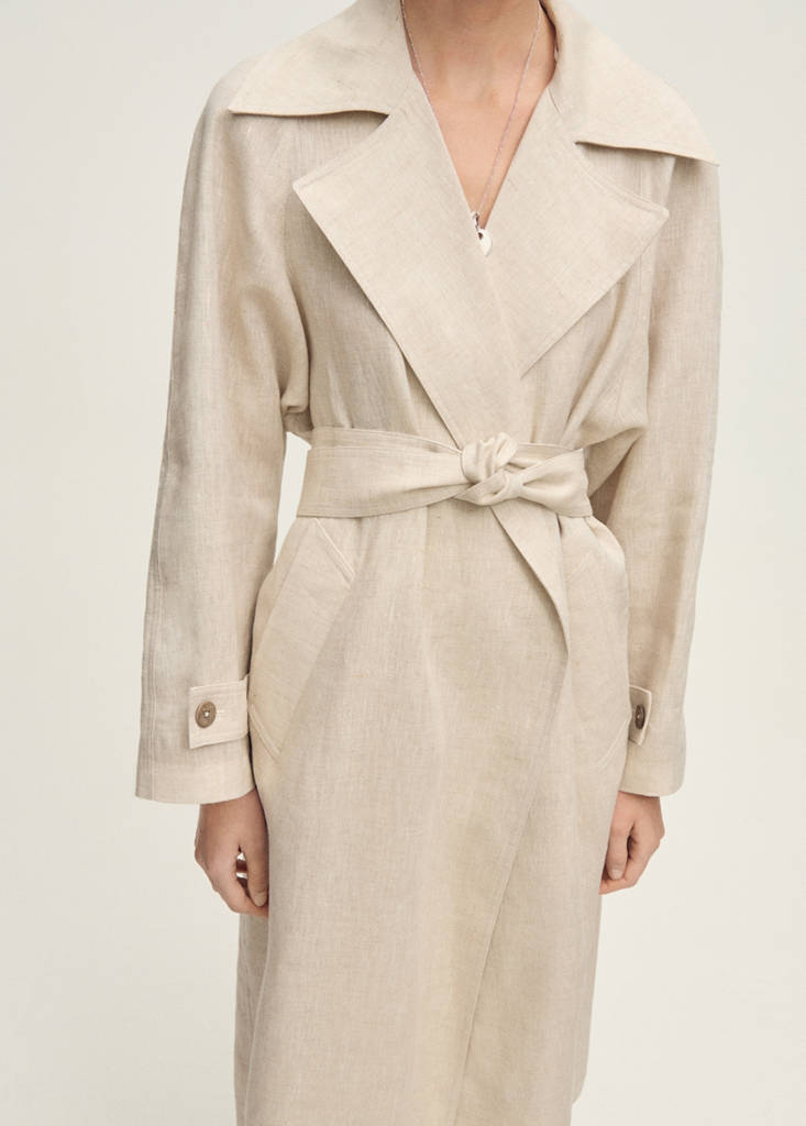 Trench-coat en lin à revers prononcés