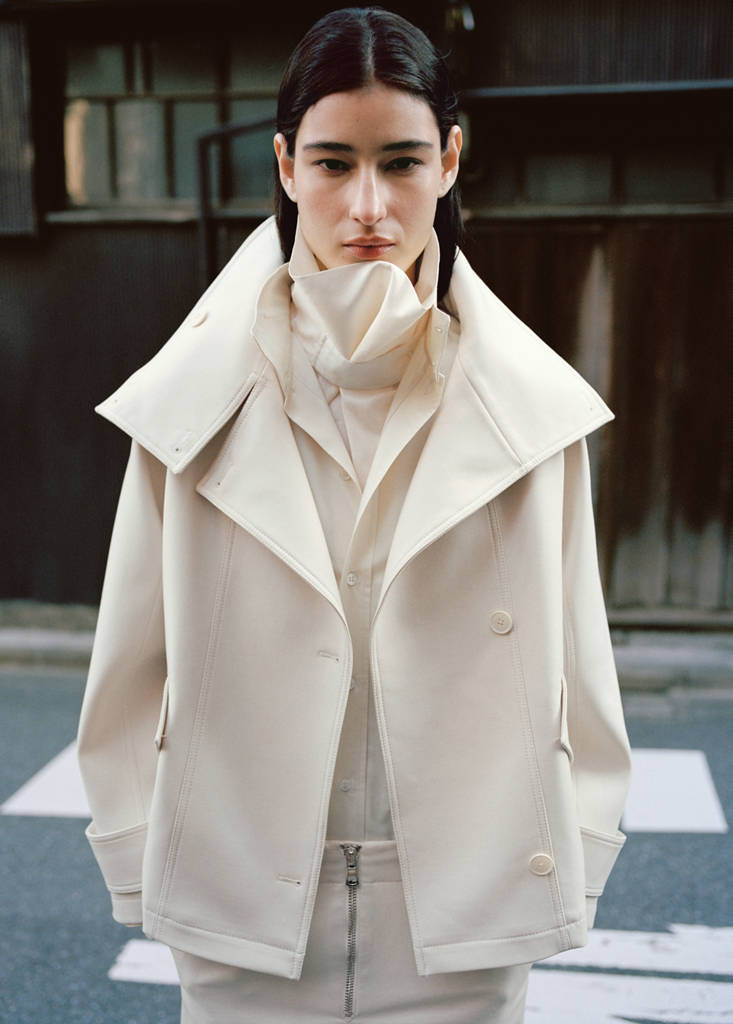 Tissu de laine mélangé. Coupe droite. Col cheminée. Deux poches à rabat sur les côtés. Manches longues avec patte. Fermeture avant avec boutons. Doublure intérieure. Collection Selection.