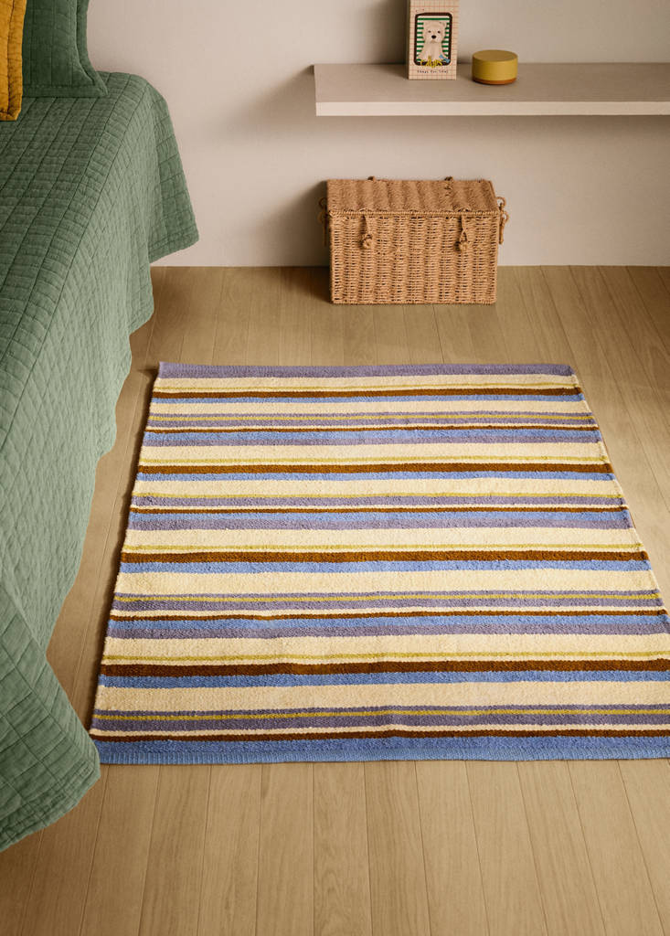 100% памук. Размер: 90x120 см. Боядисани нишки. Тъкан от естествени влакна. Ръчна изработка. Материя с контрастни ивици. Ленена памучна дреха, багрена, за креватче. Създаден специално за деца