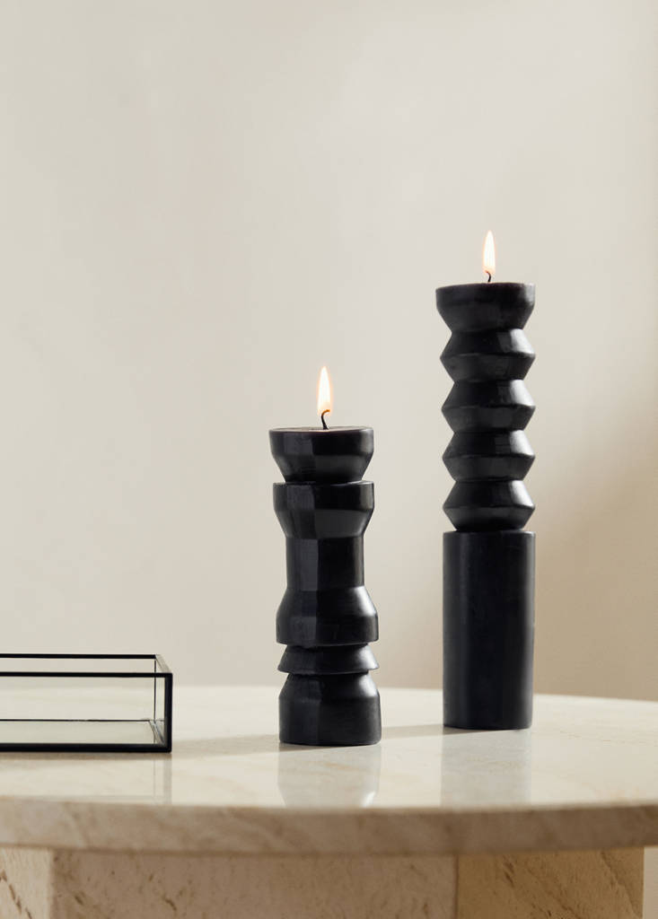 Парафинова восък. Размер S. Ниска скулптурна свещ, проектирана да добави съвременен и минималистичен акцент към всяко пространство. Нейният силует се отличава с модулен дизайн в извити и стъпаловидни форми, които предизвикват скулптурна естетика. Елегантният й дизайн я прави универсален елемент, лесен за комбиниране с различни стилове на декорация, от най-модерните до най-класическите.. Предлага се в два цвята. Предлага се в два размера