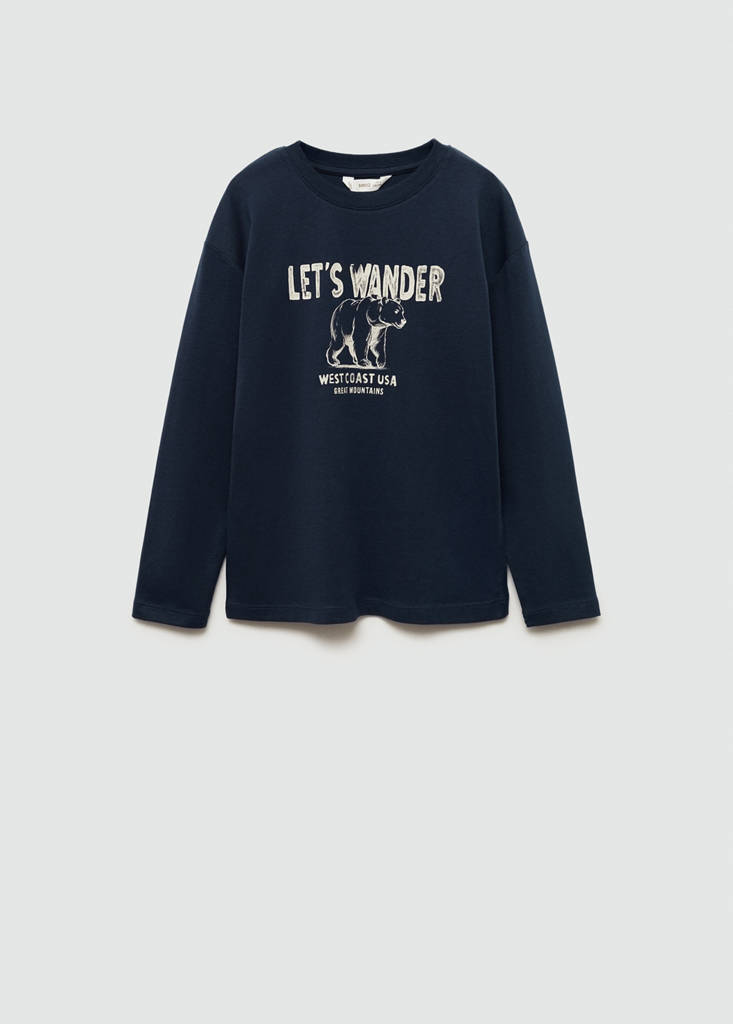 Printed cotton-blend t-shirtCurrent price [8.18 € лв. 16.00]8.18 €лв. 16.00Select a colourDark NavySelect your size5-6 years (116cm)Not available. I want it!7-8 years (128cm)Not available. I want it!9-10 years (140cm)Not available. I want it!11-12 years (152cm)Not available. I want it!13-14 years (164cm)Not available. I want it!DimensionsNotify meAdd to WishlistSee lookFree delivery to store100% Cotton. Straight design. Printed animal. Round neck. Long sleevesDetails, composition and careStore availabilityItem qualitiesRecycled cottonAt least 20%This fibre is obtained from pre- and post-consumer textile waste that is transformed into new fabrics.