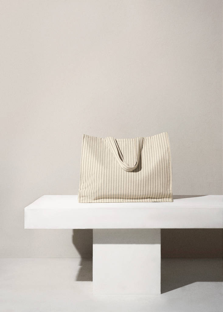 Woven stripe. Combine it with the toiletry bag, bag or beach sarong from the collection. Size: 50x42x15cm. With a spacious capacity, this tote Bag is the ideal companion for carrying your beach essentials with ease and style. From towels and sunscreen to your favourite read, this bag isn't just an accessory, it's an everyday accessory. The quality of the cotton ensures the durability of this ally so that it can withstand all your getaway. 100% cotton fabric. Striped design