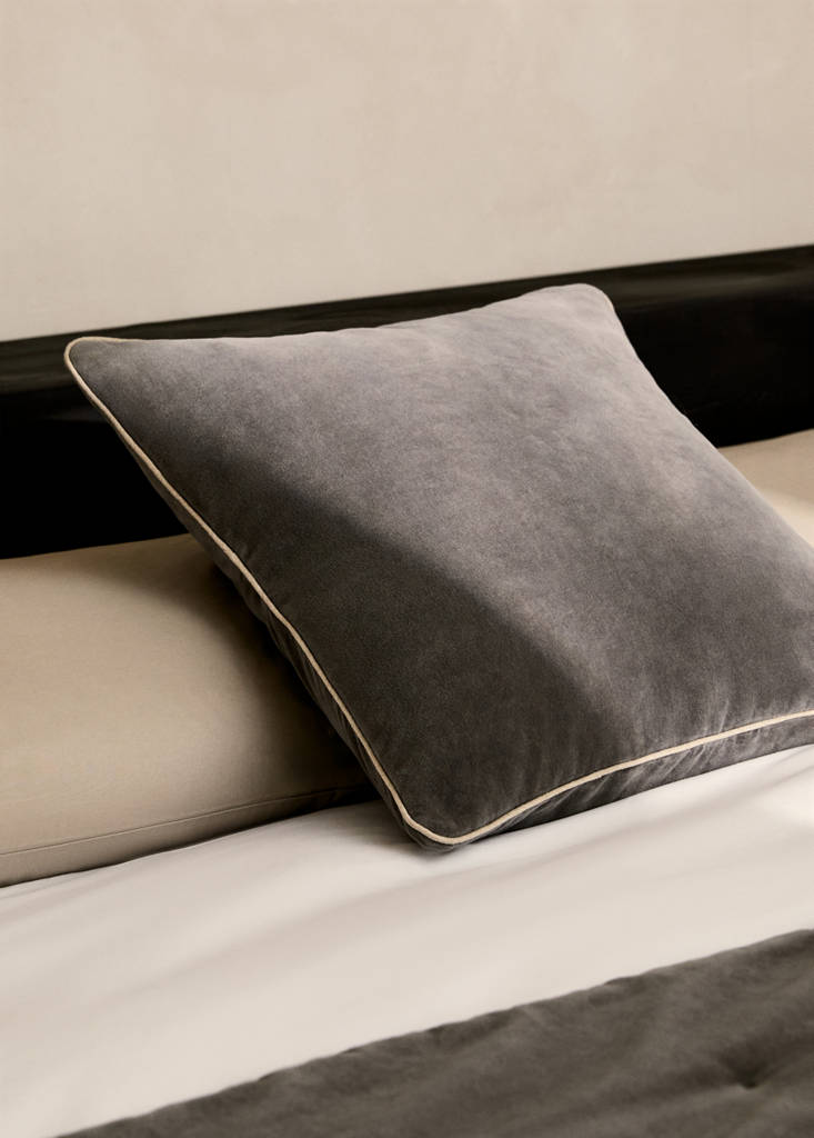 Velvet cushion cover with seam detail 50x50 cmCurrent price [35.79 € лв. 70.00]35.79 €лв. 70.00Select a colourMedium GreySelect your size50x50cmNot available. I want it!Notify meAdd to WishlistSee lookFree delivery to storeSize: 50x50cm. 100% cotton fabric. Pleasant and soft texture. Piping detail. Available in different colours. Coordinates with more products from the collectionDetails, composition and careStore availability