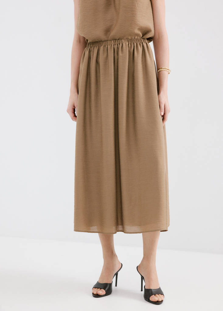 Midi design. A-line design. Mid-rise. Elastic waist. No Fastening. Total look