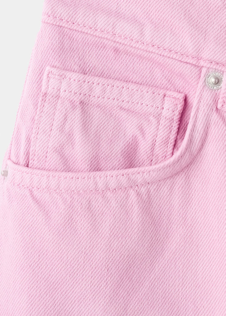 %قماش دنيم قطني 100. مناسب للأم. خصر عالي. حلقات حزام. خمسة جيوب. إغلاق أمامي بثلاثة أزرار