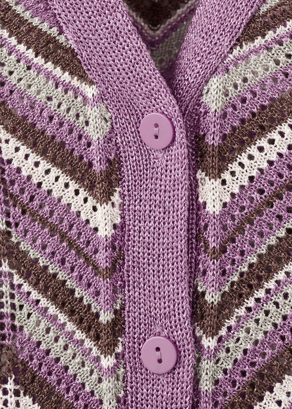 نسيج محبوك. تصميم مستقيم. تصميم طويل. طباعة بأشكال هندسية. أكمام طويلة. ياقة على شكل V. إغلاق أمامي.