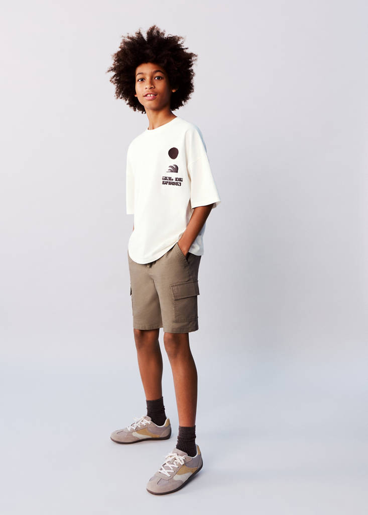 نسيج 100% قطن. تصميم كارجو. تصميم قصير. خصر مطاطي بحبل قابل للتعديل. جيبان جانبيان. جييا حمولة. جيبان خلفيان برقعة